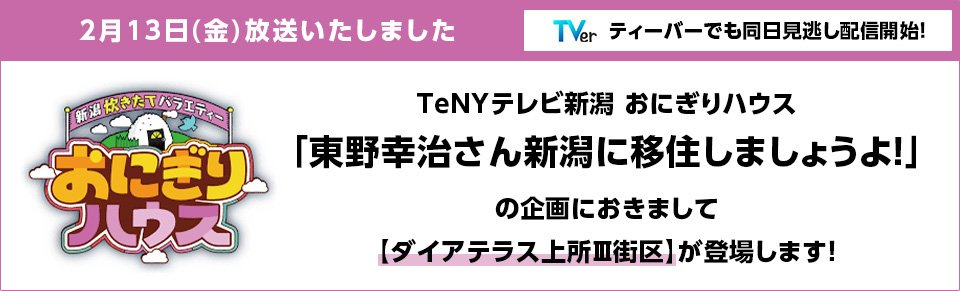 TeNYテレビ新潟 おにぎりハウス「東野幸治さん新潟に移住しましょうよ!」の企画におきまして