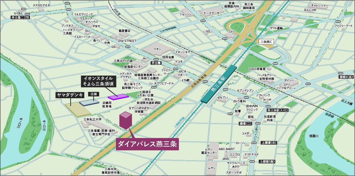 JR燕三条駅や三条燕インターチェンジ、済生会新潟県央基幹病院を身近に、「イオンスタイルそよら三条須頃」など新しい施設が次々と整備され、街はかつてない利便と安心を手にしています。
