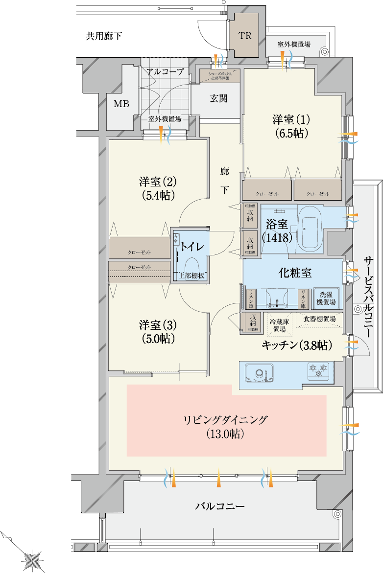 光と開放に包まれる、角住戸のゆとりプラン。